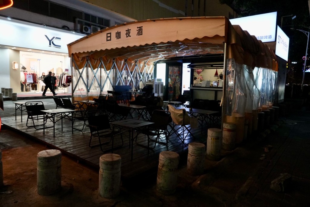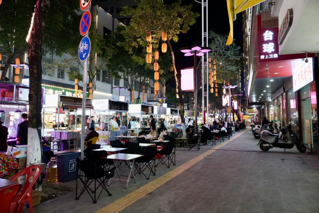 街道上还有一些小餐馆,它们在摊位旁边设有户外座位区,有些餐馆甚至供应啤酒等酒精饮料。此外,一些街头小吃摊也提供自己的小桌椅,供顾客享用食物和饮料。步行街的夜市散发着热闹活泼的氛围,漫步在摊位之间,可以真正体验到这种氛围。