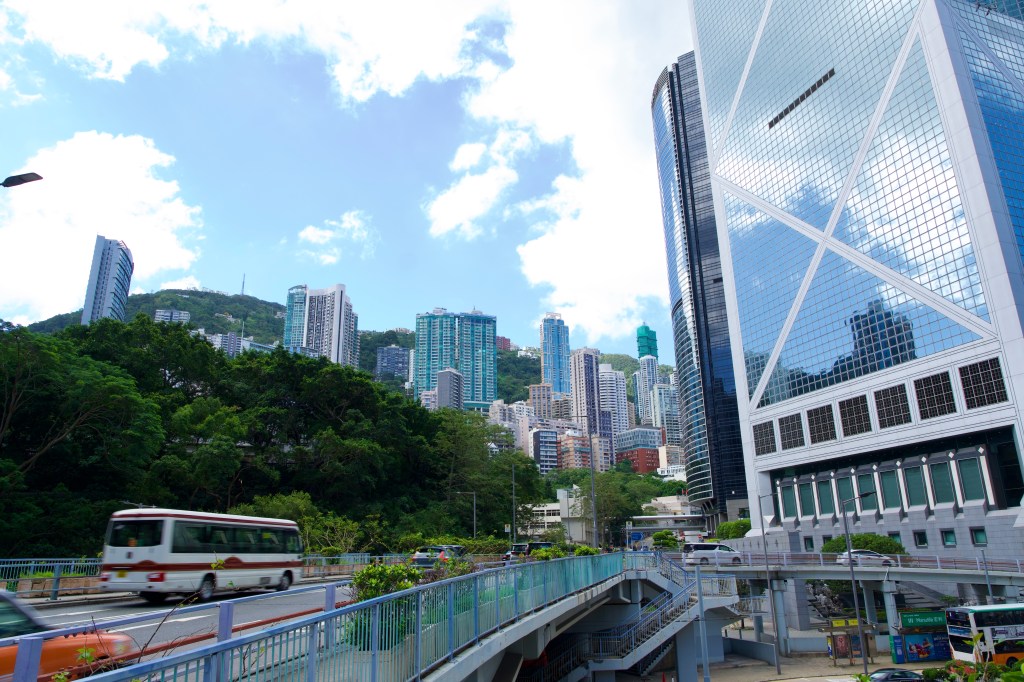 Standing in the heart of Central and looking up, Hong Kong Island’s skyscrapers rise in dense clusters that look like bamboo shoots reaching for the sky. The glass and steel towers seem to grow naturally from the street level, their reflective surfaces catching daylight between the buildings. Pushed right up against the steep green slopes of Victoria Peak, they have no room to spread sideways, so they shoot upward instead. Like bamboo competing for sunlight, these buildings stand tightly packed, creating narrow urban canyons at street level. The result feels less like a planned city and more like a forest of glass and steel that sprouted organically beneath the mountain.